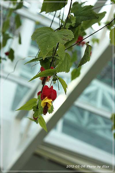 因為玻璃斜屋頂上有搭上布料遮光並以循環水流降低太陽直射屋頂的高溫
